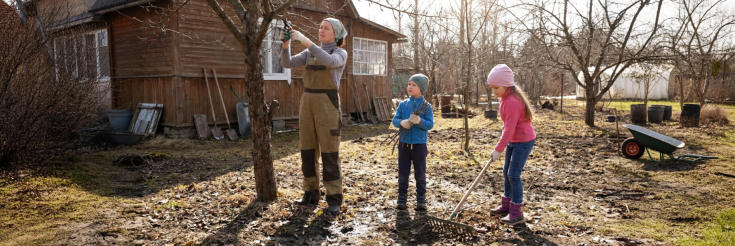 Яблони и груши: удаляйте волчки, укорачивайте на 1/3.