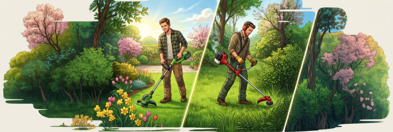 - Если вы работаете в городе или на небольшом участке, где важны тишина и экология, аккумуляторный триммер — ваш выбор.