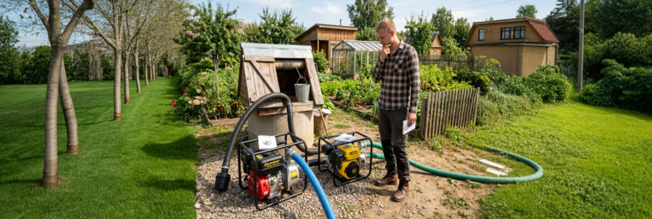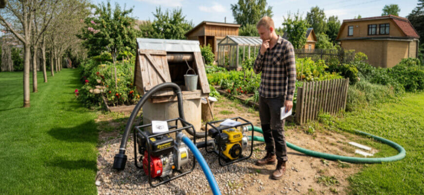 Электрические насосы хороши при наличии стабильного электричества рядом с источником. Но на большом или удалённом участке бензиновая мотопомпа выигрывает автономностью, мощностью и способностью работать часами.